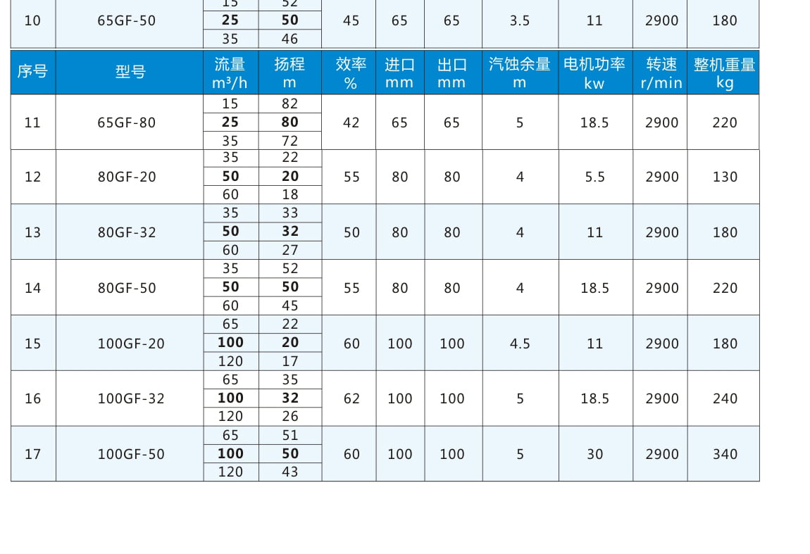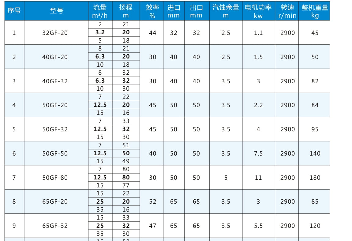 GF:氟塑料合金管道泵代號(hào)丨 80:進(jìn)口直徑80mm 丨 32:揚(yáng)程32m