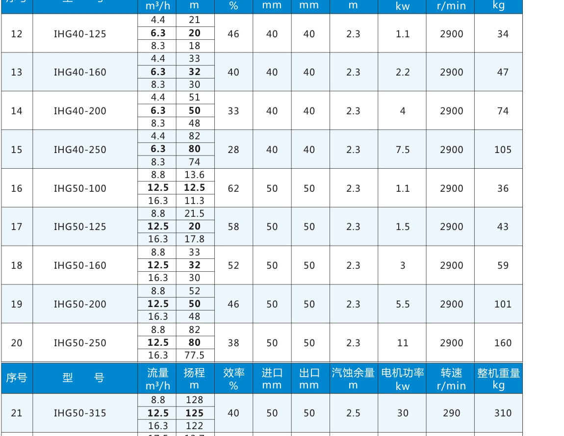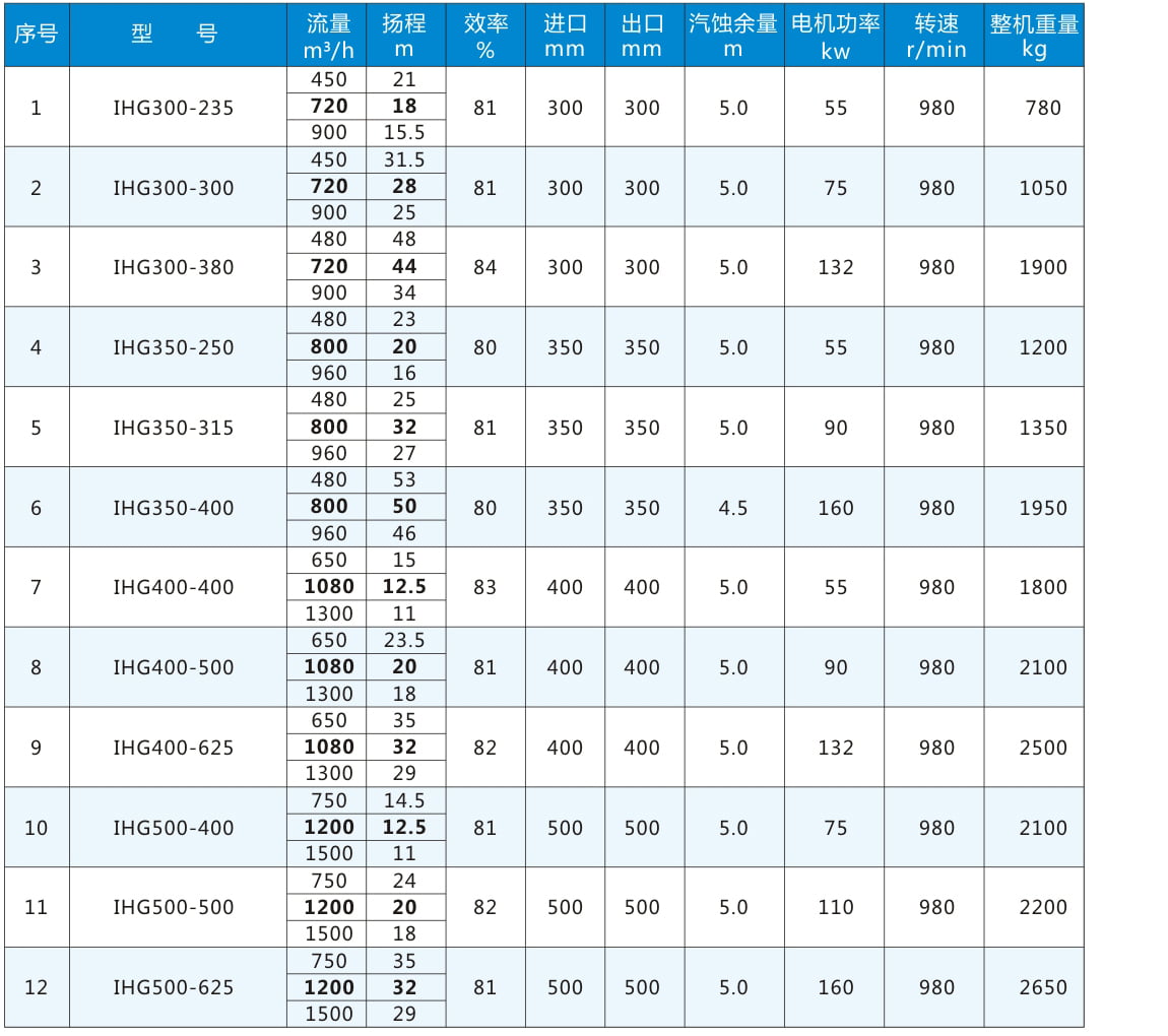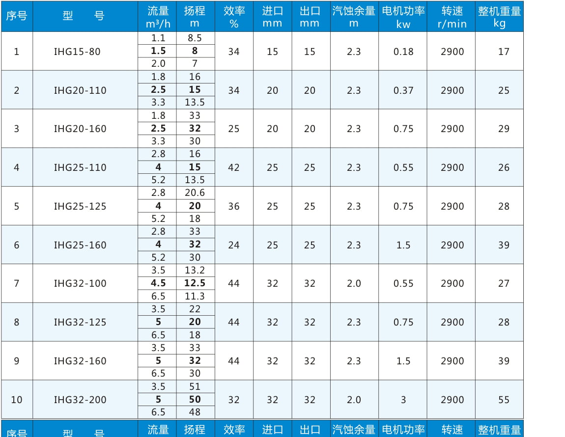 IHG:臥式不銹鋼管道泵代號丨 80:進(jìn)出口直徑80mm 丨 160:葉輪名義直徑160mm