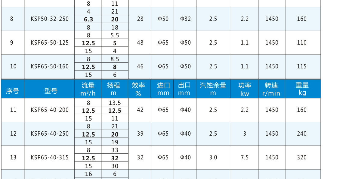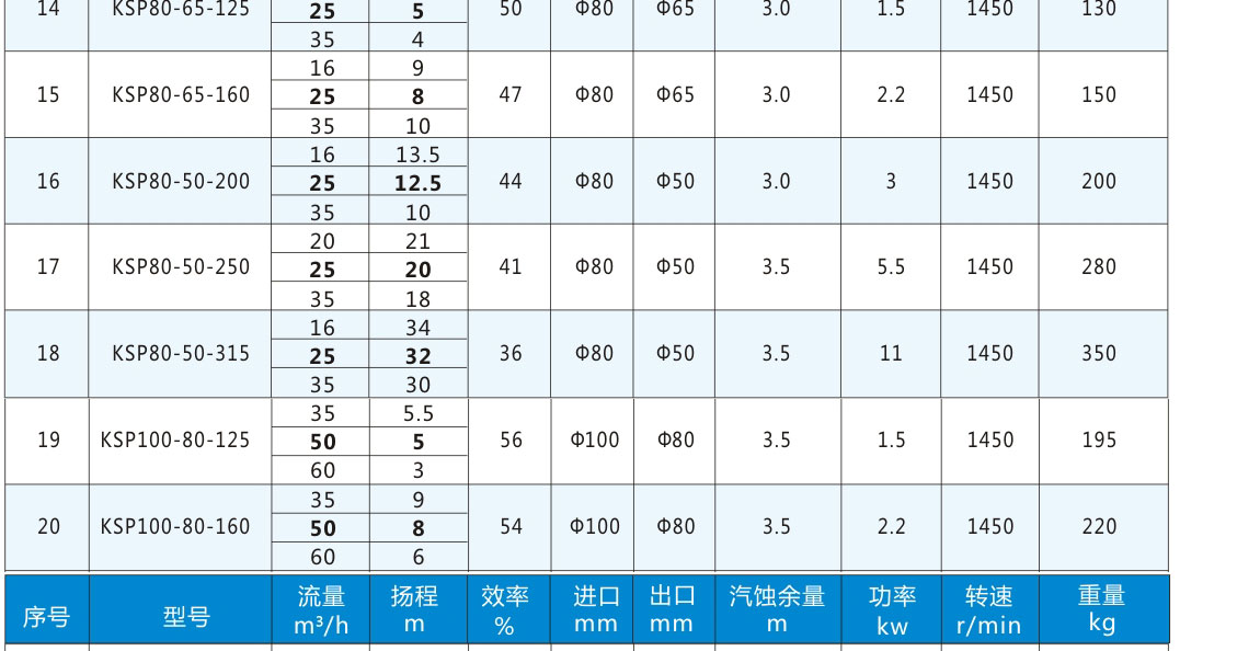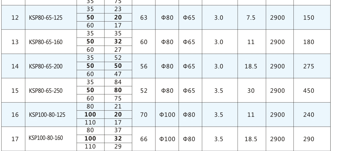 KSP:耐腐耐磨夾板泵代號丨80:進(jìn)口直徑80mm丨65:出口直徑65mm丨160:葉輪直徑125mm