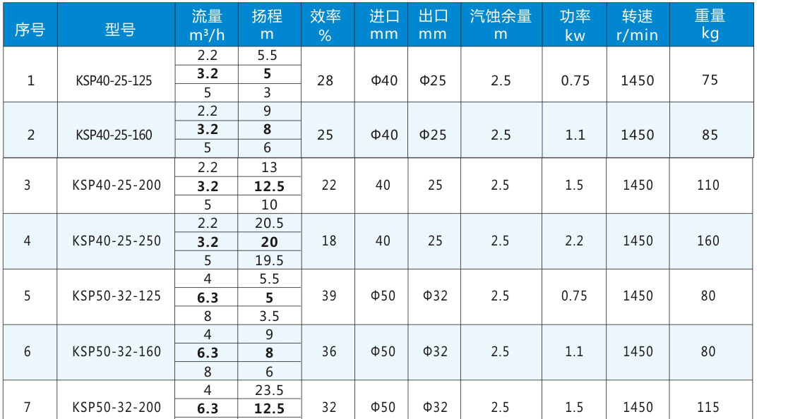 性能參數(shù)表(2):電機(jī)轉(zhuǎn)速1450r/min,表中流量揚程加粗為額定參數(shù)